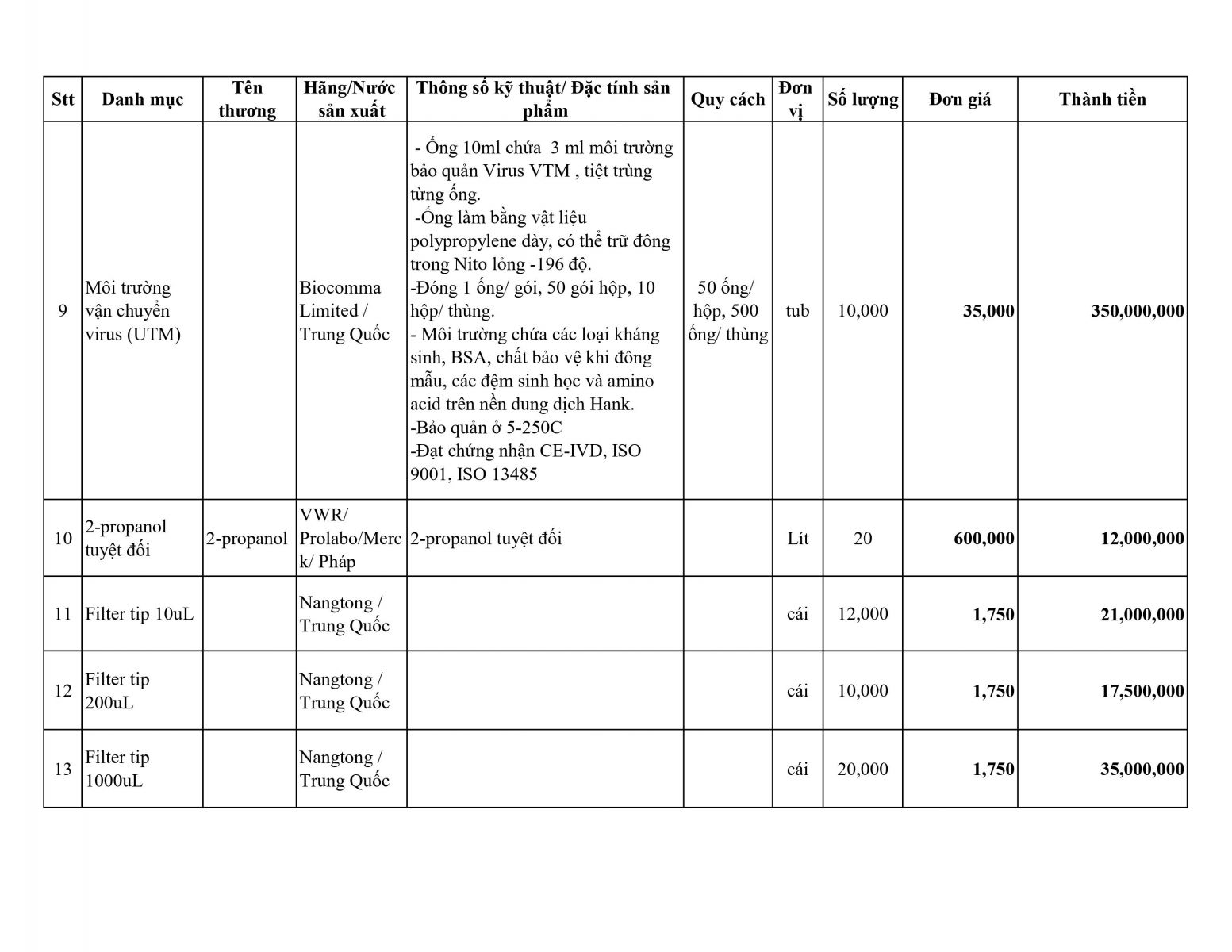 Báo giá vật tư hóa chất theo hệ thống PCR